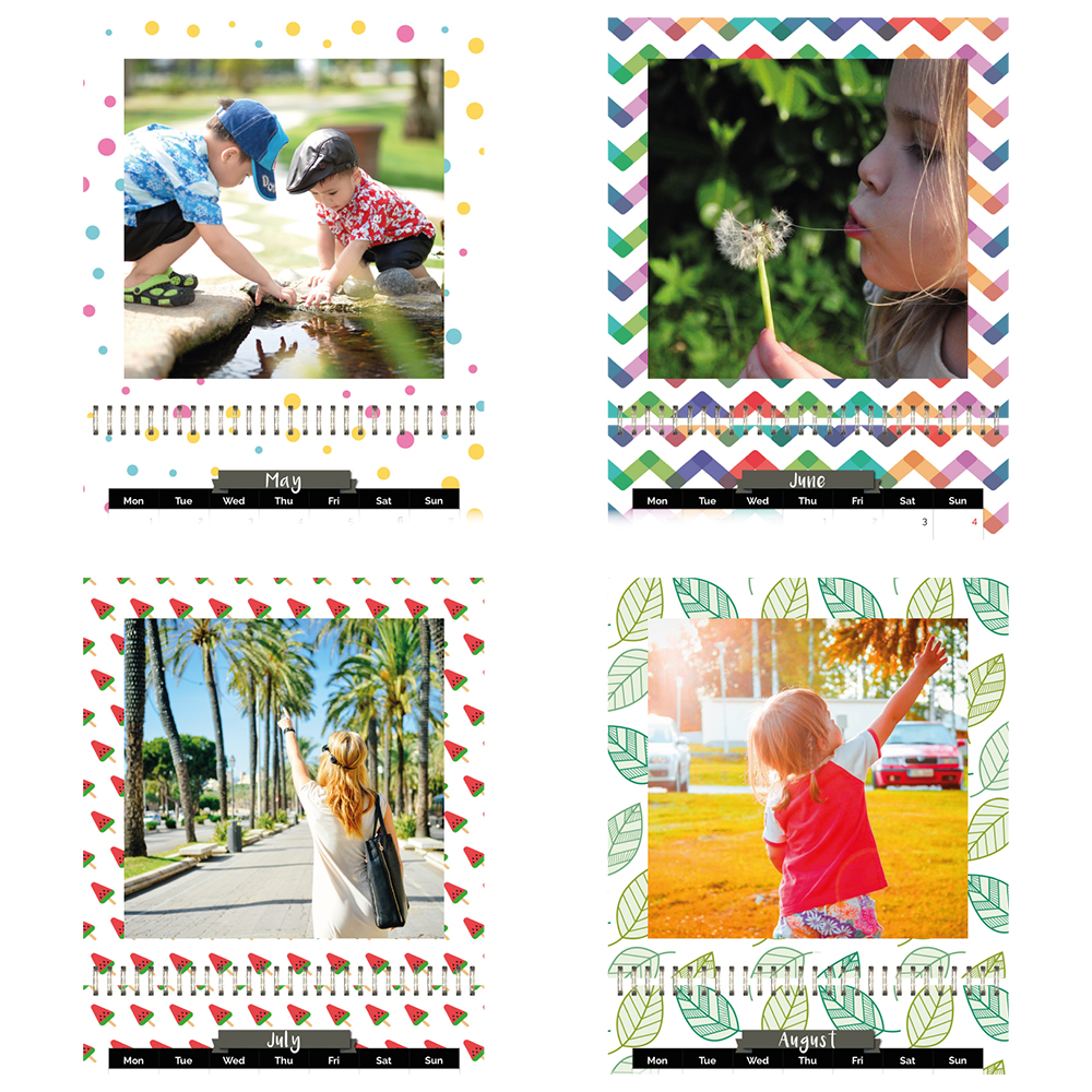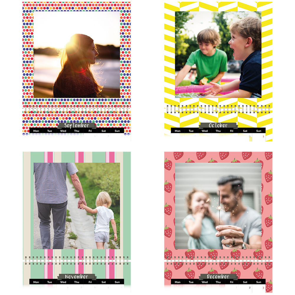 Sunshine & Happiness is a beautifully designed wall calendar with bright and cheerful backgrounds to jazz up your wall. You can pick your preferred start month and create a rolling calendar. All you need is 13 photos and you can personalised special dates with photos and text.